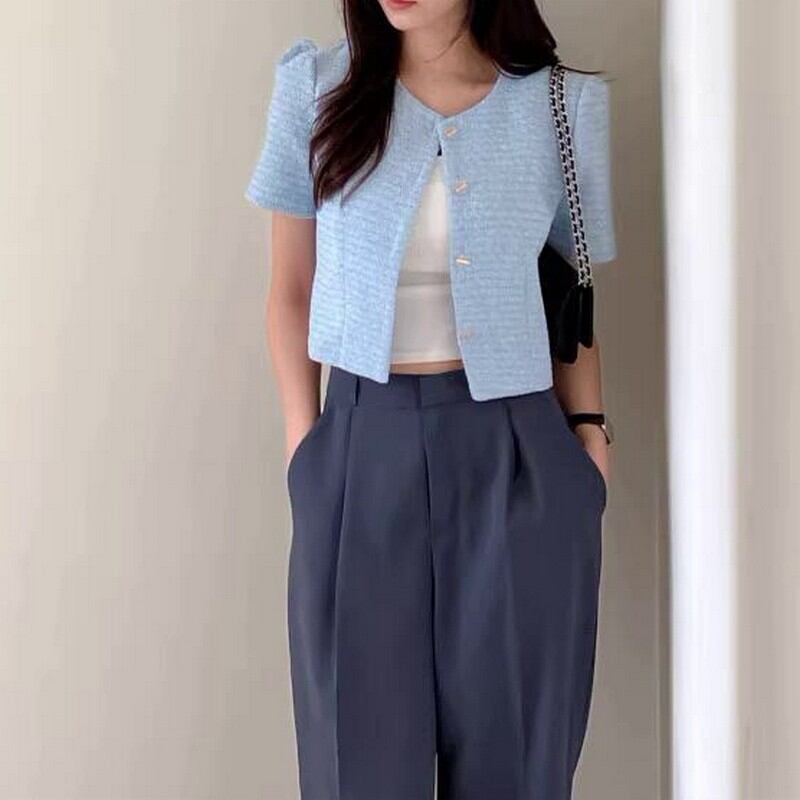 ラウンドネックシングルブレストショートジャケット A-0005