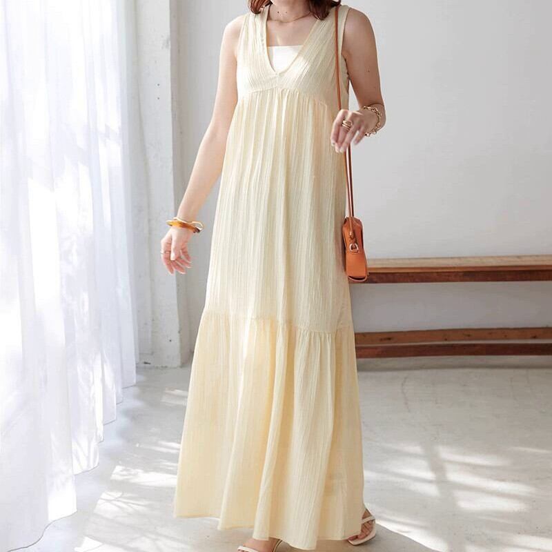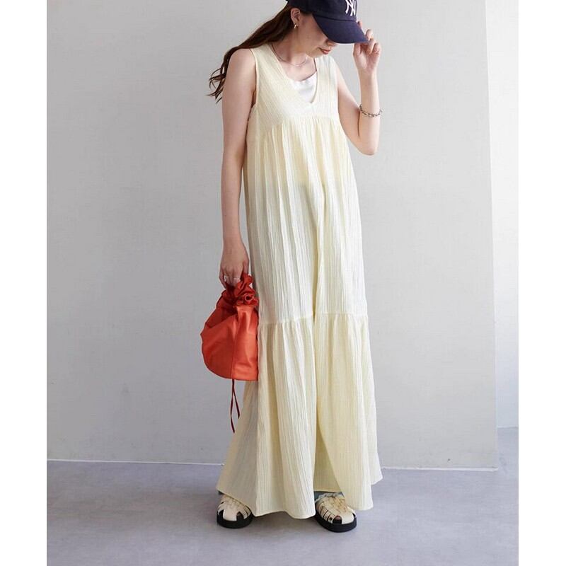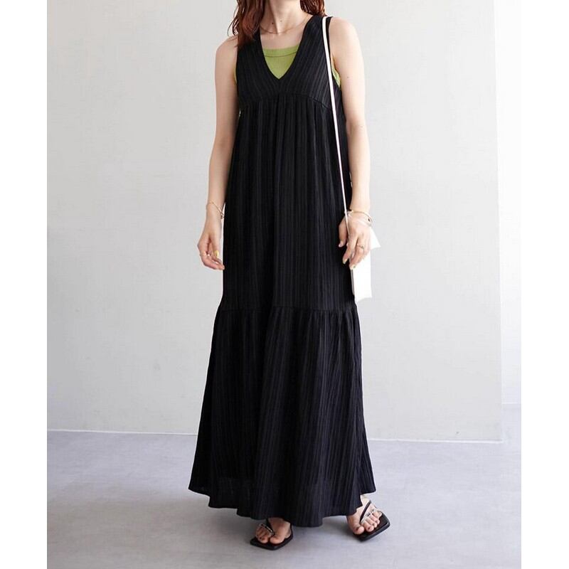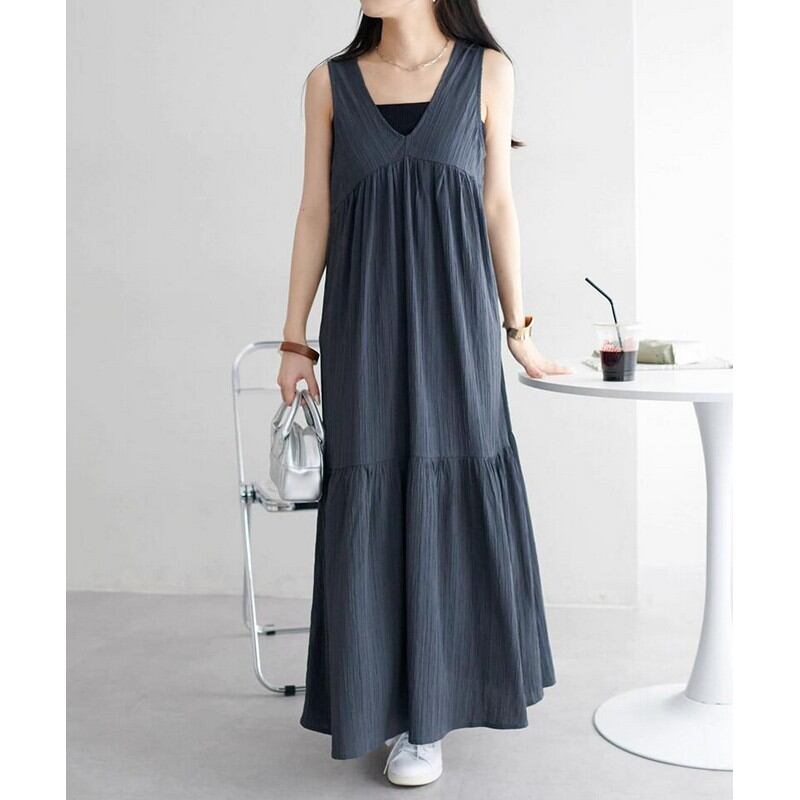 プリーツジャカードVネックワンピース A-0036