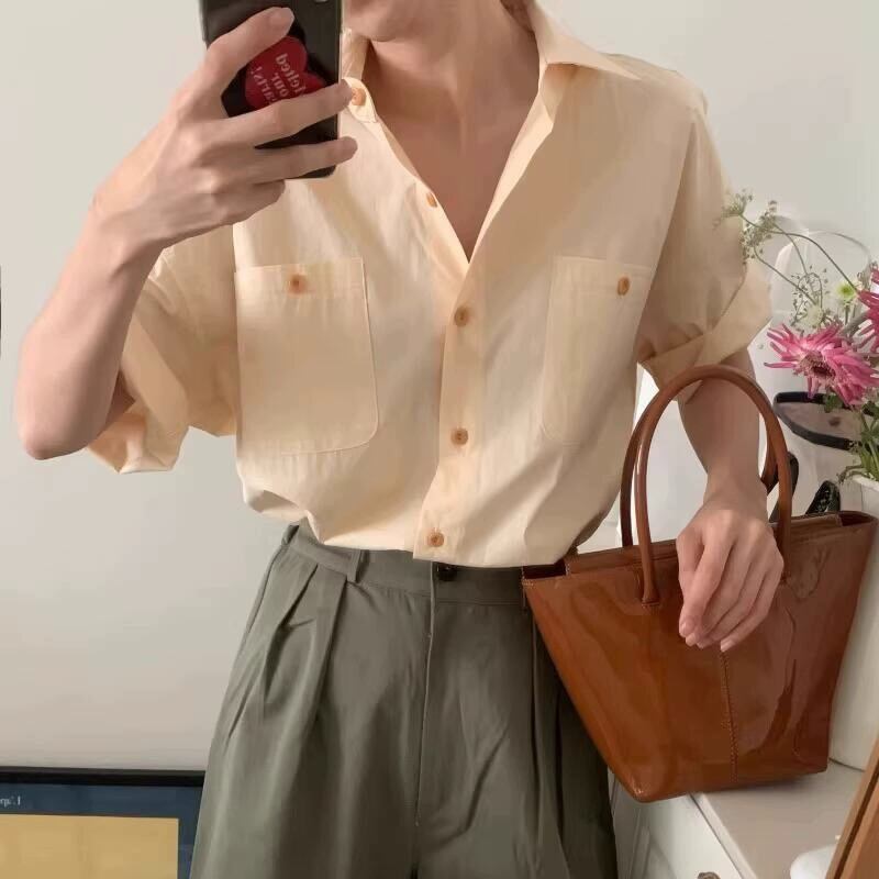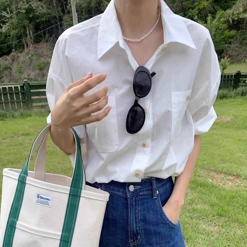 シンプル半袖シャツトップス A-0131